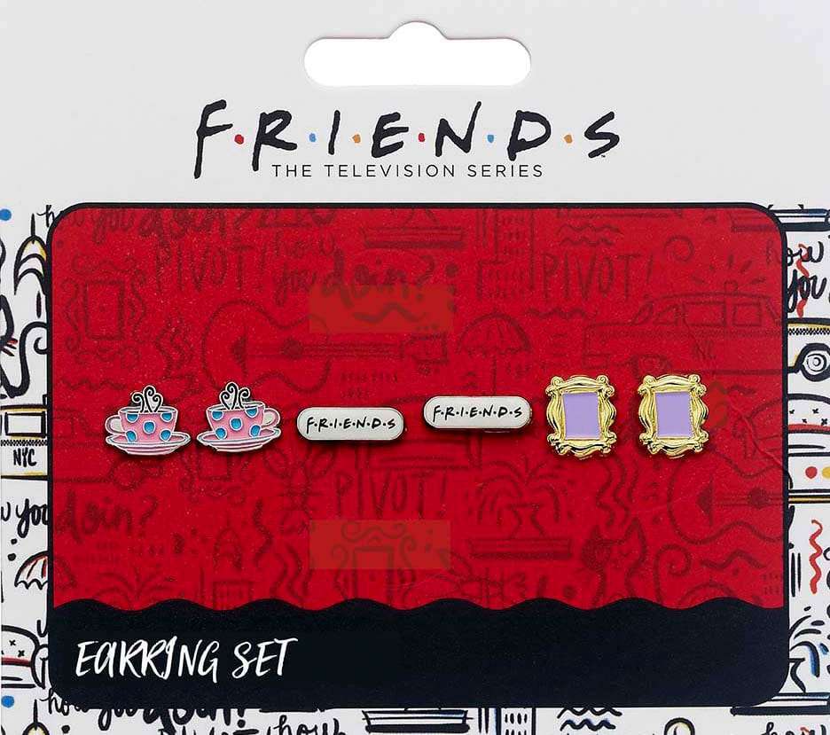 Suona i cambiamenti con i nostri AMICI set di tre orecchini a lobo. Scegli tra la cornice che circonda lo spioncino di Monica sulla sua porta d’ingresso, una tazza di caffè dal perk centrale e il famoso logo degli AMICI.