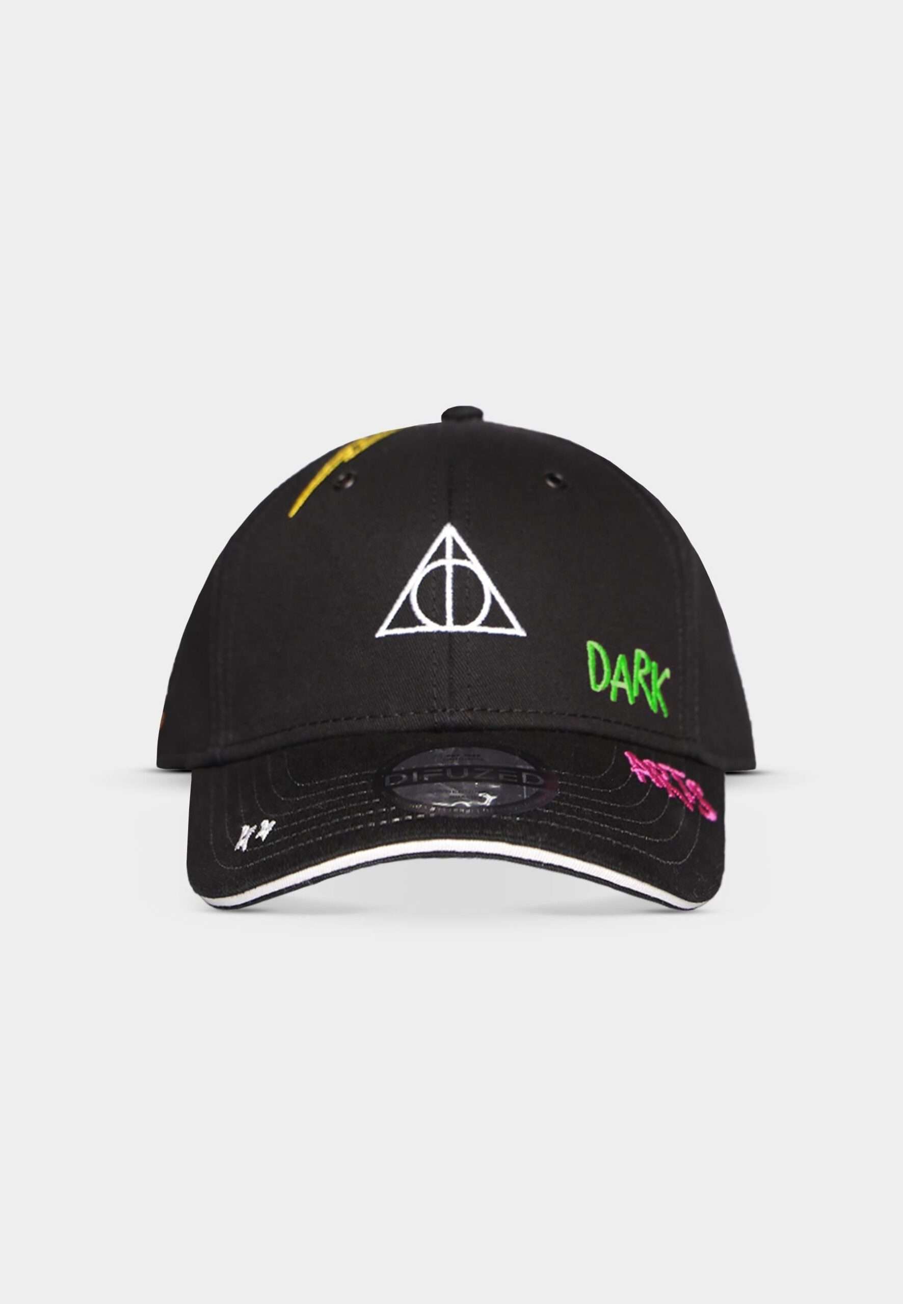 Spingi tutti i confini della magia oltre le Arti Oscure indossando questo berretto regolabile per bambini, con becco a sandwich bianco, piccoli dettagli di icone ricamate piatte posizionate dappertutto e un’etichetta tessuta nella cucitura laterale posteriore della chiusura con fibbia in plastica. Aperto sul retro e regolabile per il massimo comfort e una vestibilità ottimale.