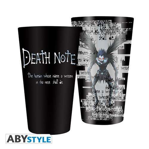 To avoid scaring your friends, your favorite shinigami is hiding in this great Death Note large glass by ABYstyle!- Material: high quality glass.- King size (40cl)- Double print: outside & inside- Not suitable with microwave and dishwasher.- Packaging: open carton box