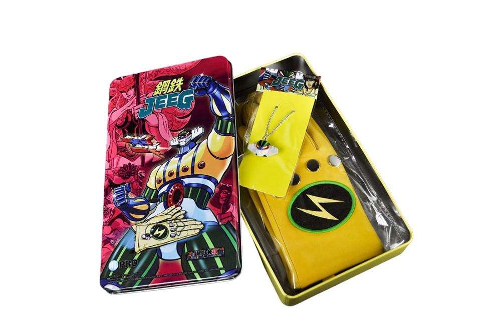 Esclusivo Metal Box set con i guanti e la collana di Hiroshi Shiba direttamente dal cartone animato Jeeg Robot D’Acciaio. Il tutto contenuto in uno splendido Metal Box: unico ed originale.Materiale Collana: Plastica Pvc, Collana in Metallo anallergico.Collana Lunga 55 Cm con pendente: Largo 3,50 Cm, Alto 2,00 Cm.Materiale Guanti: Vera Pelle, morbida, con il simbolo di Jeeg!Due misure disponibili: taglia M o taglia L