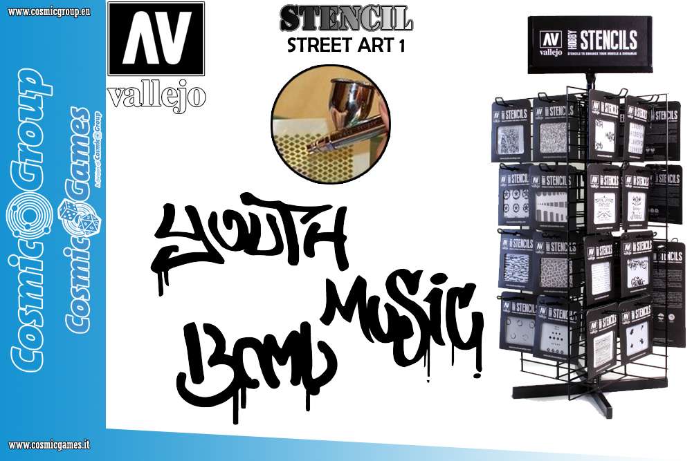 La nuova gamma di Stencil Vallejo offre una vasta selezione di riferimenti e temi per modellisti e artigiani che consentono una facile riproduzione di texture ed effetti. Diorami fantasy e militari, carri armati, edifici, aerei, astronavi, scenari di fantascienza, possono ora essere arricchiti con dettagli che li impreziosiscono in maniera estremamente semplice.Il materiale e’ traslucido e flessibile e si adatta facilmente alle superfici del modello, facilitando la riproduzione di tutti i tipi di effetti e texture.La nuova gamma di Stencil Vallejo offre una vasta selezione di riferimenti e temi per modellisti e artigiani che consentono una facile riproduzione di texture ed effetti. Diorami fantasy e militari, carri armati, edifici, aerei, astronavi, scenari di fantascienza, possono ora essere arricchiti con dettagli che li impreziosiscono in maniera estremamente semplice.Il materiale e’ traslucido e flessibile e si adatta facilmente alle superfici del modello, facilitando la riproduzione di tutti i tipi di effetti e texture.