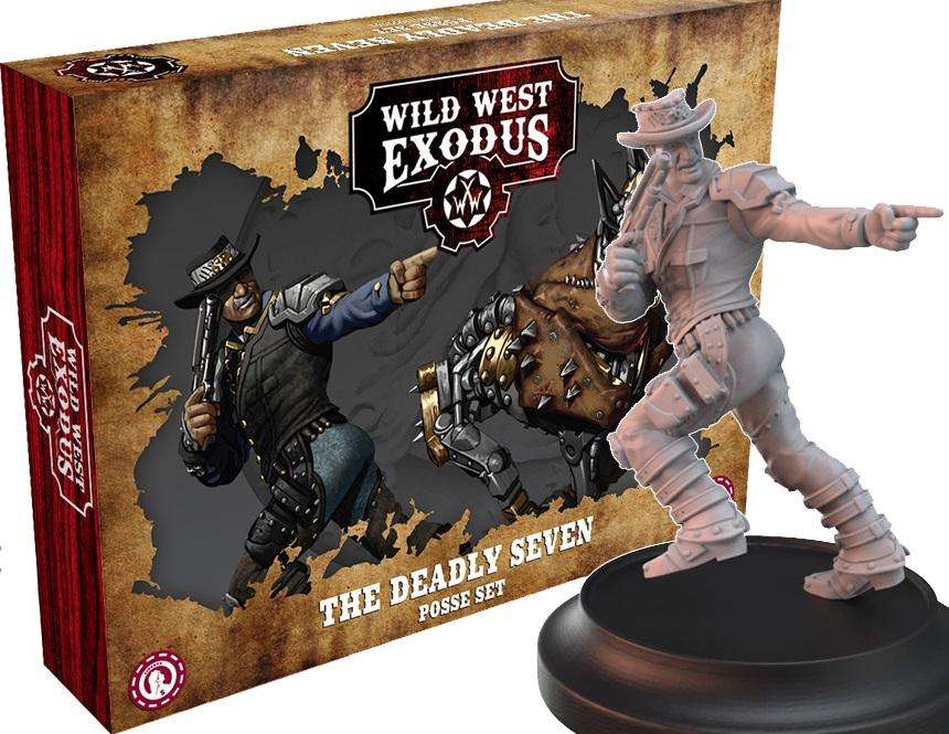 WILD WEST EXODUSTHE DEADLY SEVEN POSSEGuidati dall’ex sceriffo divenuto fuorilegge Earle Shepherd, i Deadly Seven hanno una reputazione non solo per la loro capacità di portare a termine il lavoro, ma anche per accettare i lavori che nessun altro prenderà. Ogni membro del gruppo è un esperto nel proprio campo, dalle abilità esplosive di Idina Vannez e Adam Knox, la rapida brutalità di Black Blood, Razors Li e Kodiak o la meccanica ferocia di Faraday o Brutus – i Deadly Seven sono un gruppo da non sottovalutare!La Deadly Seven Posse contiene1x Earle Shepherd1x Razors Li1x Kodiak1x Idina Vannez1x Faraday1x Black Blood1x Adam Knox1x Brutus8 basetteLe miniature sono fornite non dipinte e alcuni assemblaggi saranno richiesti.Le Carte Unità dei personaggi non sono incluse e possono essere trovate sul sito web Wild West Exodus.