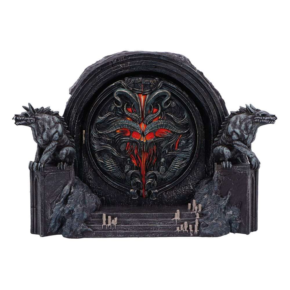 Scatena l’oscurità con la Diablo IV Hells Gate Box, un must avere per gli appassionati di giochi e i collezionisti. Questo pezzo dalla lavorazione complessa presenta l’iconico Porta dell’Inferno del gioco, sorvegliato da due statue scheletriche di lupi e incorniciato da quattro gradini minacciosi che conducono alle porte del cancello inquietanti. L’apertura delle ante rivela uno scomparto nascosto, perfetto per riporre preziosi bigiotteria. Confezionata in una splendida confezione regalo con marchio Nemesis Now DIablo iV, la scatola Hells Gate non è solo un delizioso oggetto da collezione ma anche un regalo perfetto.