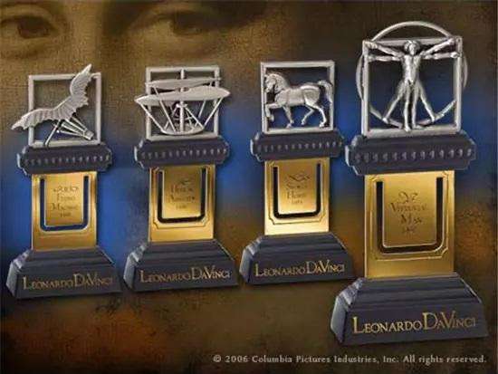 Set di 4 segnalibri in bassorilievo ispirati ai più famosi disegni e invenzioni di Leonardo Da Vinci.