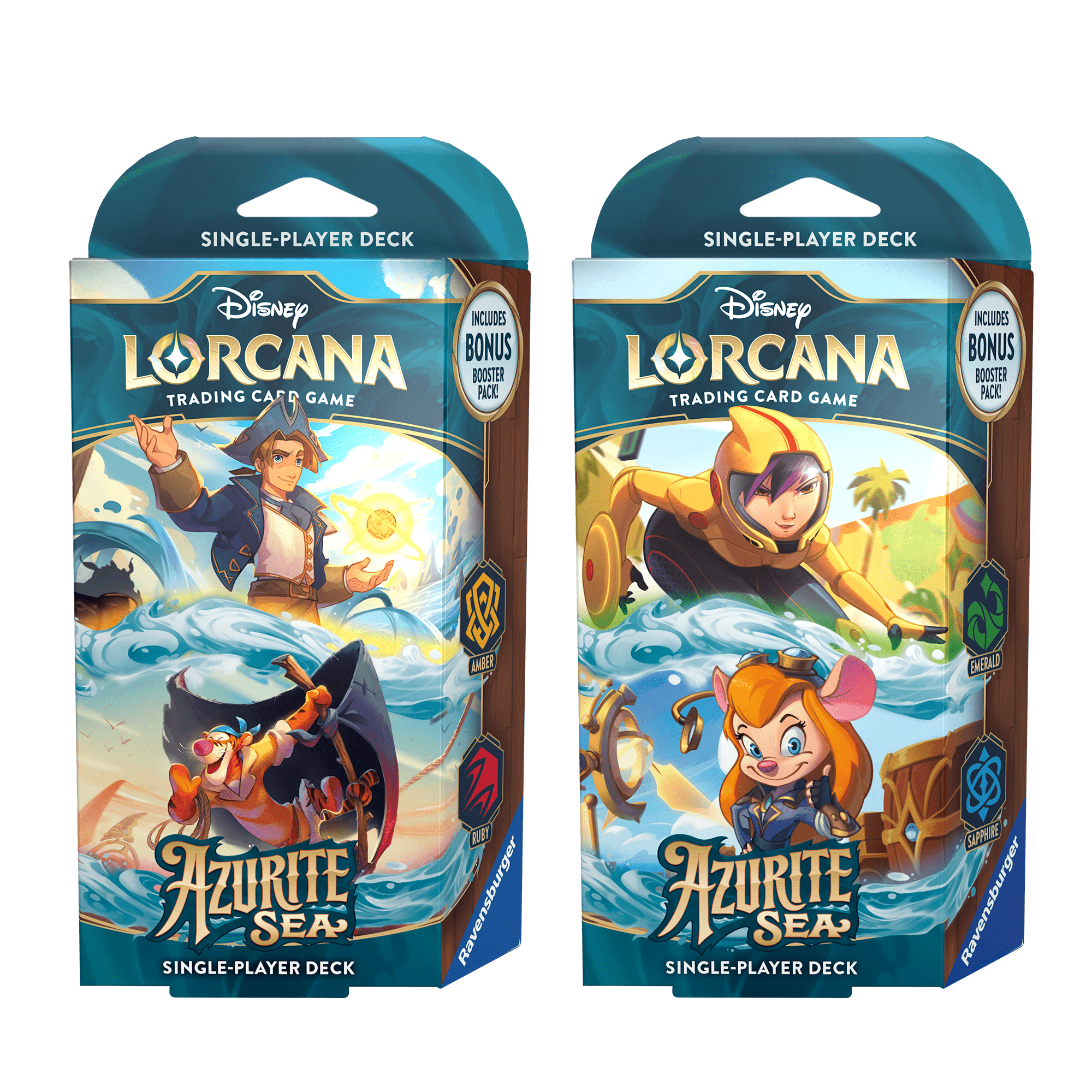 Per giocare a Disney Lorcana, ogni giocatore avrà bisogno di un mazzo da 60 carte. I mazzi già pronti per essere utilizzati contengono un mazzo precostruito con una lista specifica di carte. Se siete nuovi ai giochi di carte collezionabili, o se volete provare il gioco con un mazzo designato e testato dal Team Lorcana, questo fa proprio al caso vostro.
