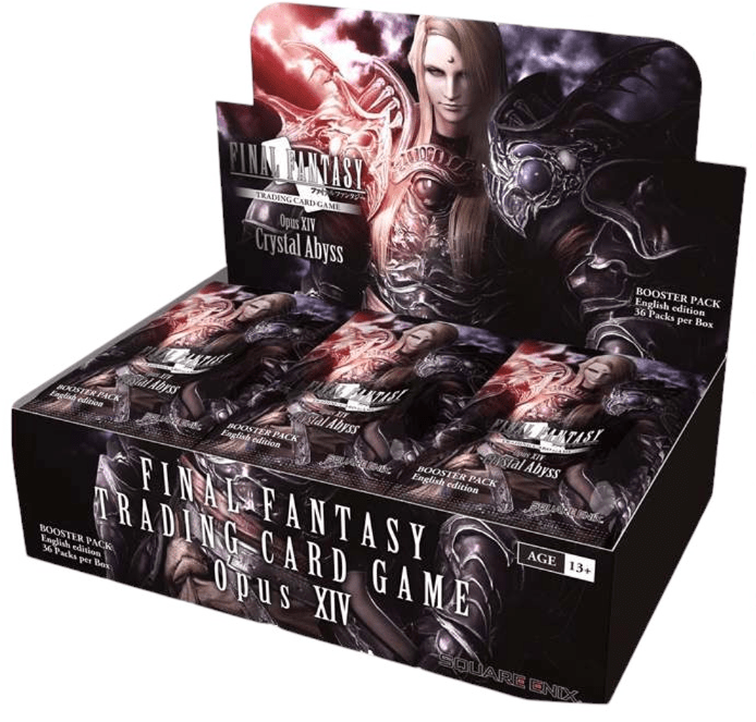 Final Fantasy Trading Card Game Opus XIV – Crystal AbyssBox da 36 buste in ItalianoIn questa espansione debuttano nuove carte basate su WAR OF THE VISIONS FINAL FANTASY BRAVE EXVIUS, con tanti nuovi personaggi che si affronteranno nelle sfide di FFTCG!Gli attaccanti multielemento, apparsi per la prima volta in Opus XII: Crystal Awakening, non possono non presenziare in OPUS XIV: Crystal Abyss, con moltissime e nuovissime combinazioni elementali, espandendo l’ampiezza delle possibilità strategiche per la costruzione del mazzo e il gioco stesso.Inoltre, ancora una volta, tre potenti carte delle espansioni precedenti sono incluse come carte legacy, rendendo questo set molto soddisfacente anche in termini di collezionabilità . •The Emperor [2-147L]•Wol [5-075L]•Estinien [6-088L]Square Enix ha sviluppato diversi giochi di carte da collezione che celebrano i suoi franchise più iconici.Uno dei più noti è il Final Fantasy Trading Card Game (FFTCG), lanciato a livello globale nell’ottobre 2016, un gioco di carte collezionabili che permette ai giocatori di costruire mazzi utilizzando personaggi, evocazioni e scenari tratti dalla serie Final Fantasy. Il gioco offre una varietà di carte con diverse abilità e strategie, rendendolo avvincente sia per i fan della serie che per gli appassionati di giochi di carte.Modalità di gioco:• Costruzione del mazzo: Ogni giocatore crea un mazzo di esattamente 50 carte, con un massimo di 3 copie della stessa carta.• Obiettivo: Infliggere 7 punti di danno all’avversario per vincere la partita.• Tipi di carte: Le carte si dividono in Avanguardie (utilizzate per attaccare e difendere), Supporti (forniscono risorse e abilità ) e Evocazioni (effetti immediati).• Punti Cristallo (CP): Le carte vengono giocate spendendo CP, ottenuti “duellando” (ruotando) le carte Supporto o scartando carte dalla mano.Vale la pena giocarlo?Se sei un fan di Final Fantasy e dei giochi di carte strategici, FFTCG offre un’esperienza unica, con artwork fantastici e un sistema profondo, quindi ideale per tutti i giocatori e collezionisti di carte.
