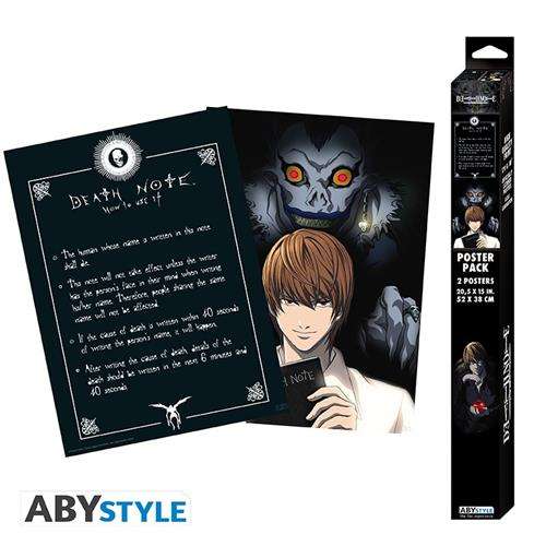 Follow Ryuk’s advice and like Light Yagami, learn the rules of the Death Note well with this superb set of 2 Death Note posters by ABYstyle!- Laminated paper, with a higher than standard thickness: 170g/m². Printing with offset process.- 2 posters wrapped in a carton box up to the license.- Dimensions: 52cm x 38cm