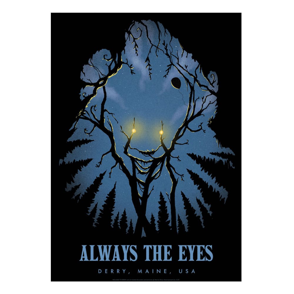 Raffigurante la forma di Pennywise il Clown nello spazio negativo, questa stampa artistica in edizione limitata è stata creata appositamente per l’uscita della serie TV prequel IT: Welcome to Derry.