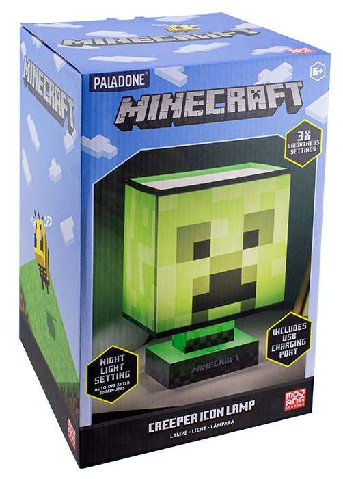 Lampada raffigurante il Creeper di Minecraft, alimentata da 3 batterie AAA (non incluse) e con porta USB. 3 differenti gradazioni di luce.