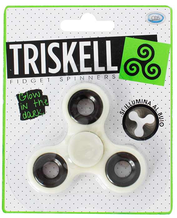 Fino a 3 minuti di rotazione. 1 colore disponibile. Materiale: plastica e metallo. Cuscinetto a sfera trilobato. Dimensione prodotto: 7,6 x 7,6 x 1,3 cm.