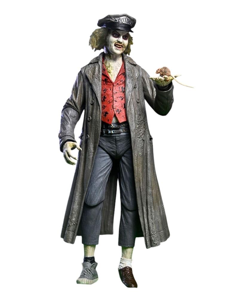 Hai bisogno di spaventare i vivi e di farli allontanare dal tuo accogliente rifugio? Basta dire “Betelgeuse” tre volte ed evocherai il più grande bio-esorcista dell’aldilà! Il fantasma più potente del classico film di Tim Burton del 1988 è tornato come action figure Ultimate NECA! Beetlejuice sfoggia il suo iconico look da “guida turistica” dalla sua prima rivelazione completa nel film, presentandosi ai Maitland come il famigerato bio-esorcista pronto a liberare la loro casa da fastidiosi esseri viventi. Questa action figure in scala da 18 cm altamente dettagliata è articolata per la posa e include una serie di accessori ultraterreni: diverse piastre per il viso intercambiabili, cappello e mani, un topo morto, volantini di Betelgeuse, un giornale e una lanterna! Viene fornita in una confezione Ultimate a cinque pannelli con finestra, perfetta per i collezionisti.