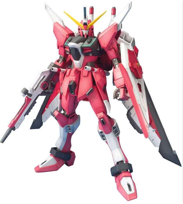 MG ZGMF-19A Infinite Justice Gundam – Kit Master Grade dettagliato con ampia posabilità e articolazioni migliorate per pose dinamiche. Include fucile a raggi, spade “Super Lacerta” combinabili, scudo con boomerang e “Grapple Stinger”, oltre a effetti a raggi e Phantom-01 Backpack.