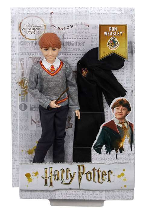 Questo personaggio di Ron Weasley assomiglia proprio al protagonista dell’iconica serie di film e indossa la sua caratteristica uniforme di Hogwarts, con il mantello di Grifondoro. Con undici punti di articolazione (collo, spalle, fianchi, ginocchia, gomiti e polsi) Ron Weasley è pronto per l’azione e per le pose da incantesimi! Il personaggio è dotato di una bacchetta magica personalizzata proprio come quella che Ron usa sul grande schermo, perfetta per lanciare incantesimi e per ispirare giochi di fantasia. Colori e decorazioni possono variare.