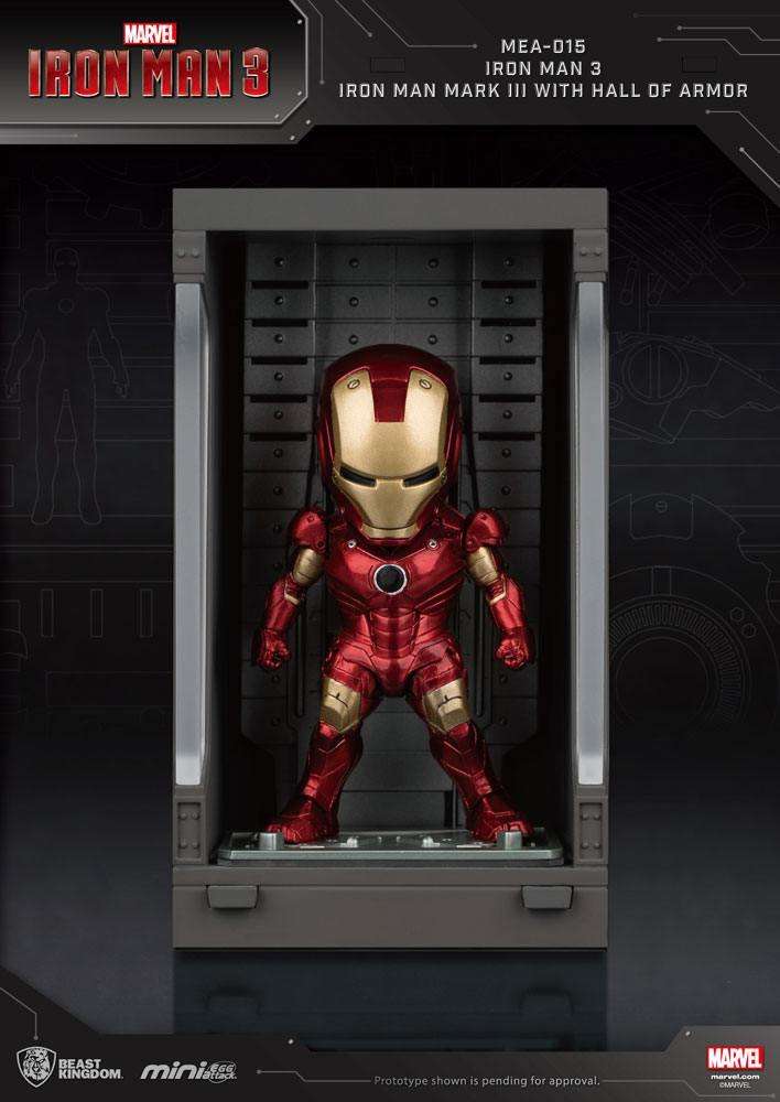 Con la serie Mini Egg Attack di Beast Kingdom, che prende i classici design stilizzati e li miniaturizza in una forma più visualizzabile, il design è perfetto per mostrare le molteplici versioni della tuta Iron Man.