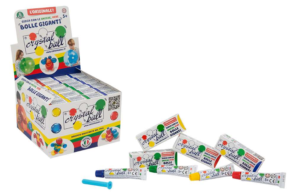 Gioca con Crystal Ball per dare vita a bolle di ogni forma e colore! Per il corretto utilizzo del prodotto,&nbspmettere un po’ di&nbsppasta sul cannello. Successivamente, con il cannello rivolto verso il basso, soffia fino a che non otterrai la bolla della dimensione desiderata: per sganciare la bolla, tira e ruota dolcemente il cannello. La pasta utilizzata &egrave costituita da sostanze chimiche non tossiche, conforme alle attuali norme sulla sicurezza. Non adatto a bambini sotto i 5 anni.