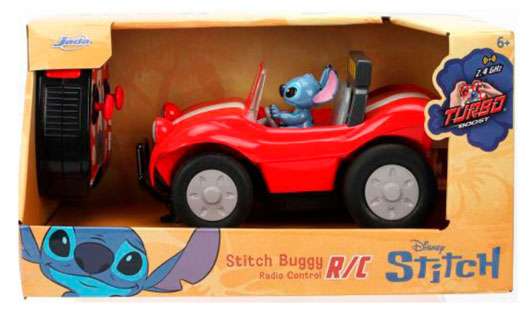 Veicolo radiocomandato di Stitch, il personaggio dei film Disney “Lilo &amp Stitch”. In scala 1/24 (lunghezza 19 cm) dispone di 2 canali per il controllo, tecnologia a 2,5 GHz e funzione turbo. Sono necessarie 5 batterie (non incluse). Età minima consigliata 6 anni.