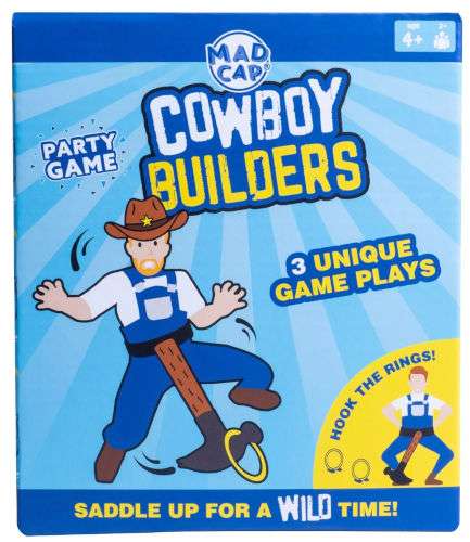 Salta in sella e divertiti con i Cowboy Builders di MAD CAP! Fatti strada verso la vittoria accovacciandoti e facendo roteare il tuo martello gonfiabile in questo esilarante ed energico gioco di società! Vinci punti agganciando gli anelli, ma assicurati di essere il primo a pescare! Raduna i tuoi amici e divertiti con tre modalità di gioco uniche e un’installazione semplicissima:
