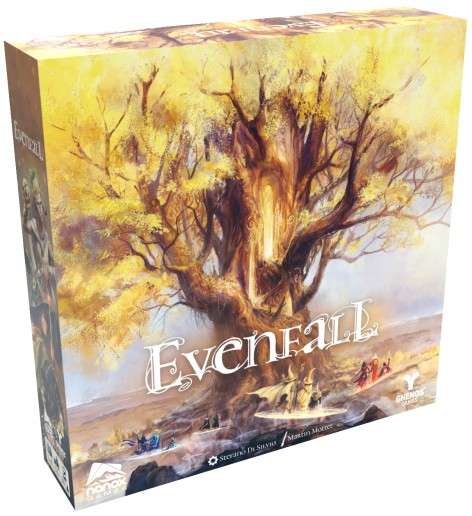 Evenfall è un gioco competitivo di gestione della mano e combo di carte con ambientazione esoterica. Sei a capo di una congrega di streghe e incantatori, e hai l’obiettivo di ascendere al Trono Magico. Hai molti modi di accumulare Punti Vittoria, tra cui conquistare nuovi Luoghi di Potere e giocare su di essi potenti Rituali, incrementandone il valore con le Pietre del Potere. Puoi conquistare un Luogo di Potere posizionando le tue Streghe in una delle Regioni del gioco. Una volta conquistato, puoi ottenere risorse da quel luogo, da spendere per molti effetti, tra cui giocare carte, che ti forniscono benefici e abilità di tipo diverso. Combina i diversi effetti per massimizzare il tuo punteggio. Le Streghe posizionate nelle Regioni, difatti, formano la forza principale del tuo Clan nella fase delle Battaglie solo vincendole puoi procurarti le Pietre del Potere, che moltiplicano i punti dei tuoi rituali. Affina la tua strategia e ricorda: solo una Congrega ascenderà al Trono Magico!
