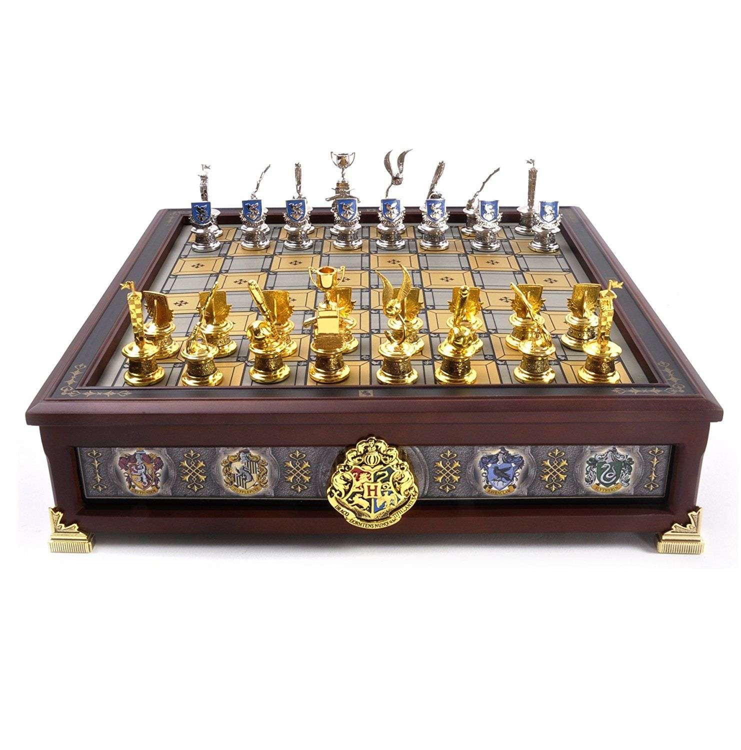 I pezzi di scacchi sono modellati sulle famose squadre di Quidditch di Hogwarts, come la palla del Quaffle e il Golden Snitch. Ogni partita sarà un’avventura magica mentre comandi le tue casate preferite in questa partita unica.