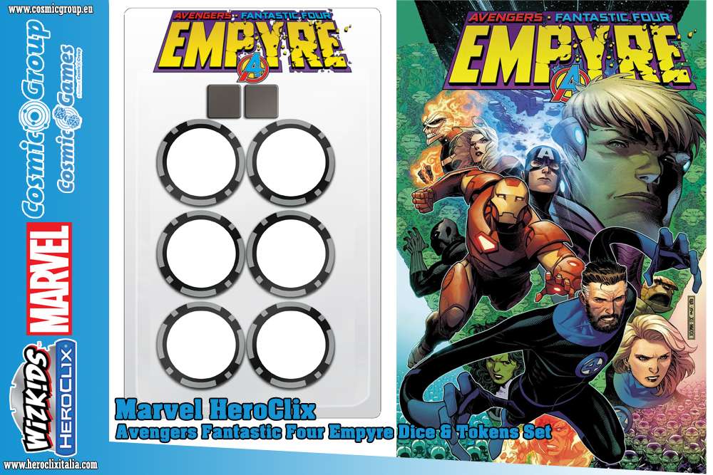 Marvel HeroClixAvengers Fantastic Four EMPYRE Dice & Tokens PackIl Dice e Token Pack contiene 2 dadi personalizzati e sei segnalini azione per celebrare l’uscita di Marvel HeroClix: Avengers Fantastic Four EMPYRE Booster Brick!