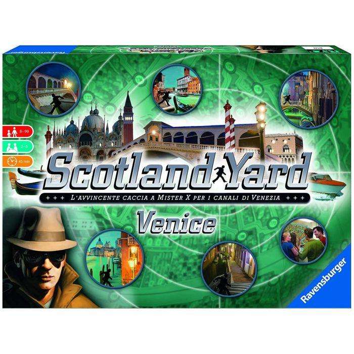 La versione ambientata a Venezia del celebre Scotland Yard! Mister X si è nascosto a Venezia e dispone di nuovi mezzi di trasporto e tecniche per sfuggire ai detective. Un’avvincente caccia a Mister X tra canali, ponti e le calli di Venezia, ma solo il più astuto vincerà. I poliziotti riusciranno a scovarlo solo coordinando le loro operazioni, mentre Mr. X continuerà a sfuggire usando l’autobus, la metropolitana e i taxi! Un giocatore è Mister X, gli altri sono gli ispettori alle sue calcagna, in una caccia spietata ricca di colpi di scena e repentini cambiamenti di fronte. Chi riuscirà alla fine ad ammanettare Mister X? Il famoso gioco di strategia unisce ancora una volta tutta la famiglia!