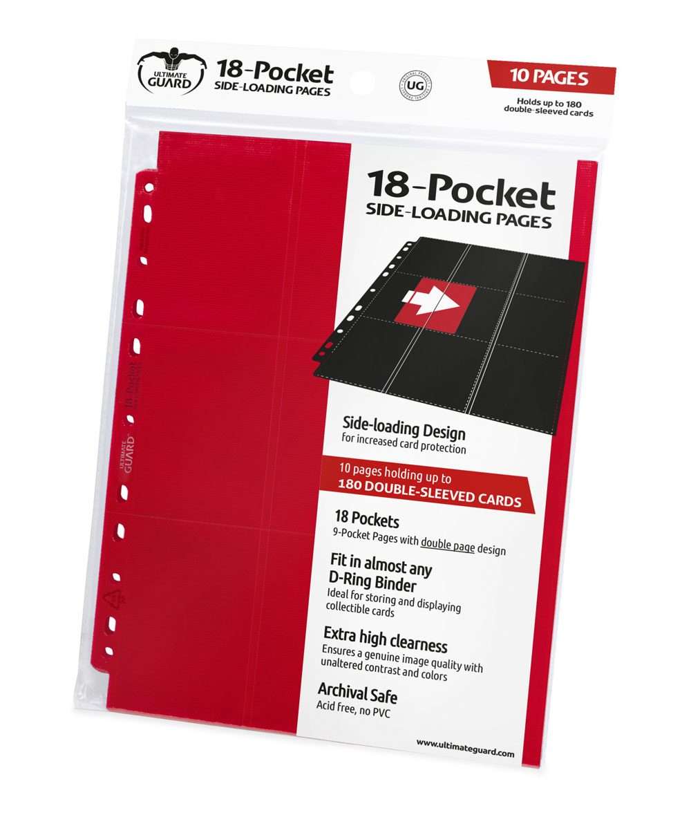 Alta qualità, pagine tascabili a doppia faccia (18 tasche, 9 tasche ciascuna sul lato anteriore e posteriore), che si adattano a quasi tutti i D-Ring-Binder, grazie alla doppia striscia rinforzata a 11 fori. Ogni confezione contiene 10 pagine per conservare e trasportare almeno 180 carte a doppia manica (18 per pagina).