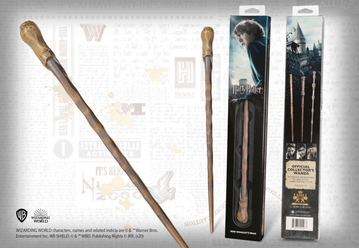 La bacchetta di Harry Potter in una scatola standard per finestre. La bacchetta all’interno è identica alla versione da collezione ma senza scatola da collezione.