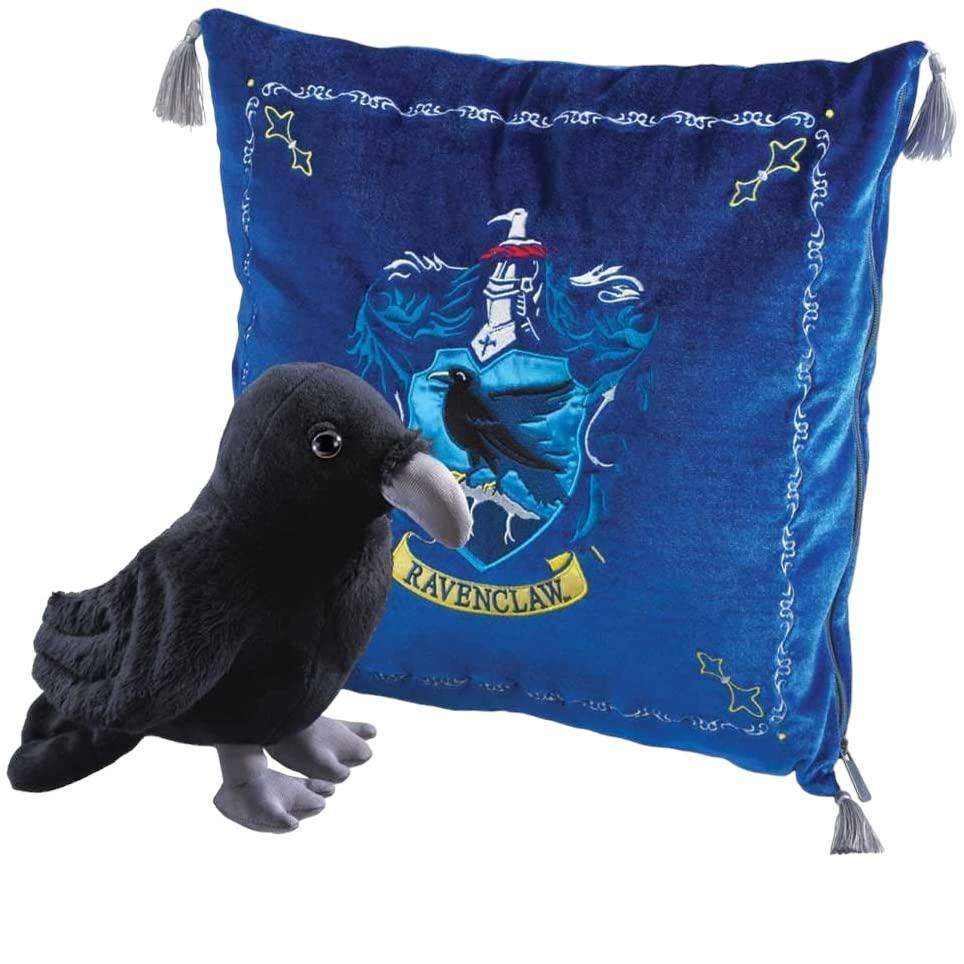 Questo cuscino con lo stemma ricamato di Corvonero contiene un peluche della mascotte della casa Tassorosso.