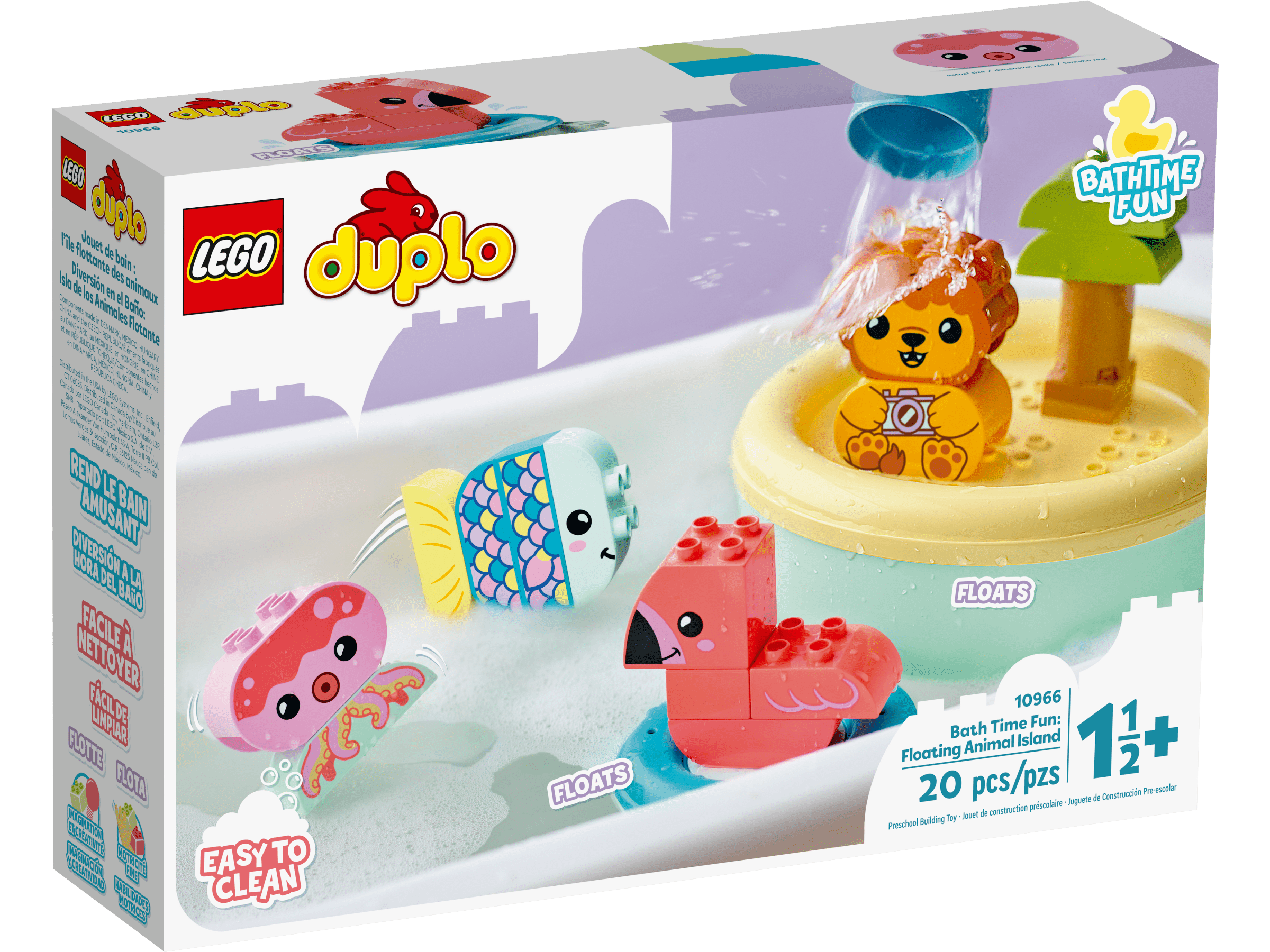 Il mio primo LEGO® DUPLO® Ora del bagnetto: Isola degli animali galleggiante (10966) è un set di gioco per lo sviluppo ricco di funzioni, perfetto per tutti i bambini dai 18 mesi in su che amano gli animali.