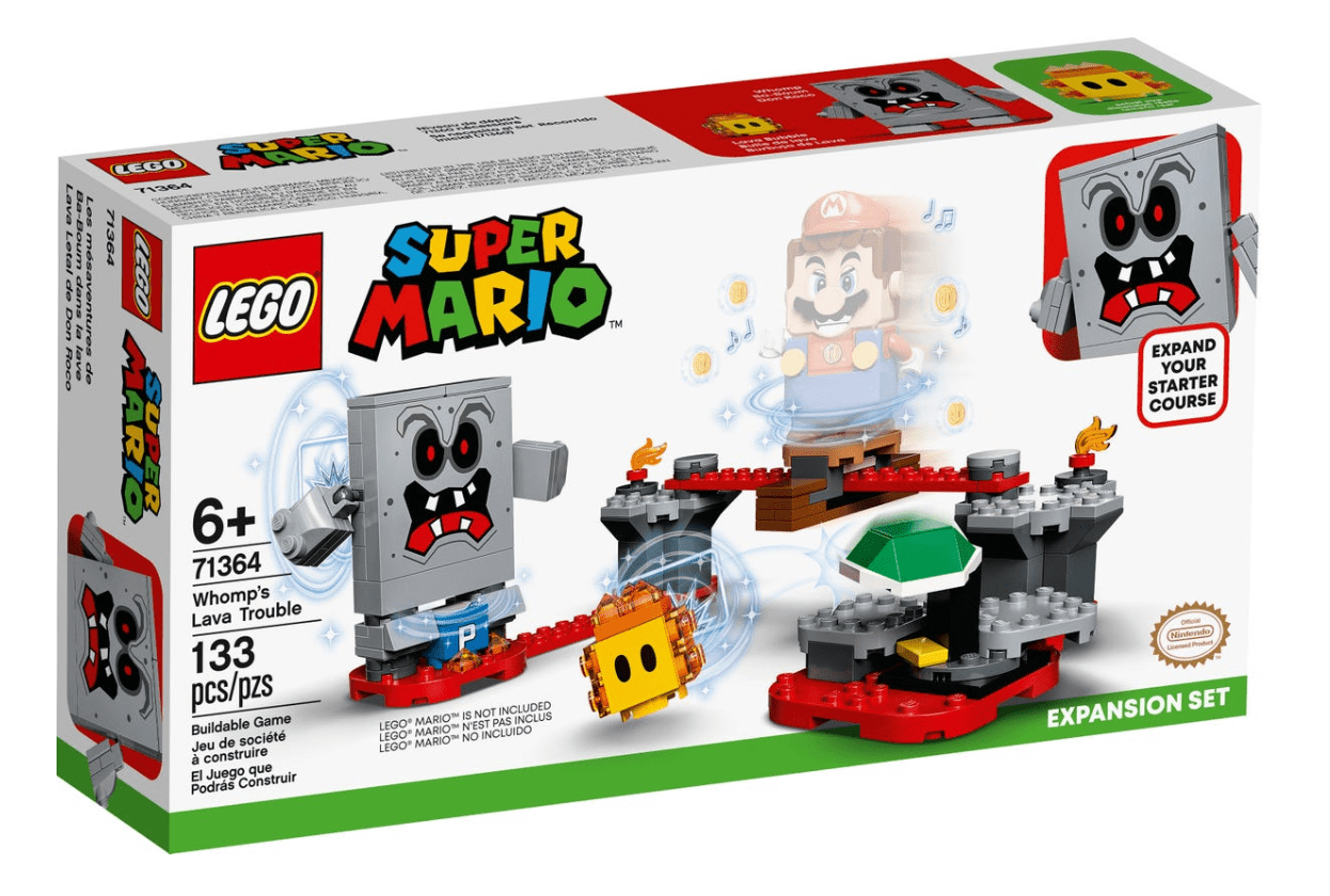 LEGO Super Mario Guai con la lava di Womp – Pack di Espansione – 71364. Tipo di prodotto: Set da costruzione, Colore del prodotto: Multicolore, Genere consigliato: Ragazzo/Ragazza. Avviso CSS UE: Non adatto per bambini con età inferiore ai 36 mesi, Choking hazard warning: Small parts. Larghezza imballo: 141 mm, Profondità imballo: 262 mm, Altezza imballo: 61 mm. Quantità per livello: 96 pezzo(i), Larghezza scatola principale: 19,9 cm, Lunghezza del cartone principale: 29,9 cm