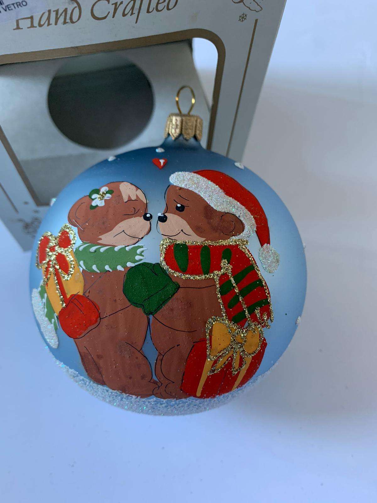 PALLINA CON ORSETTI DIPINTA A MANO 10 CM ADDOBBI NATALESCATOLA ESTERNA NON IN PERFETTE CONDIZIONI
