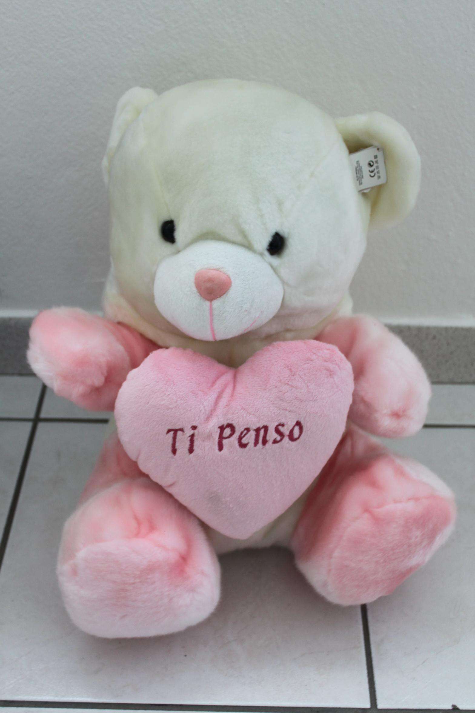 PPeticoco – Peluche Orso bianco con cappuccio bianco rosa e cuore 40cmIl peluche perfetto da regalare al proprio partner