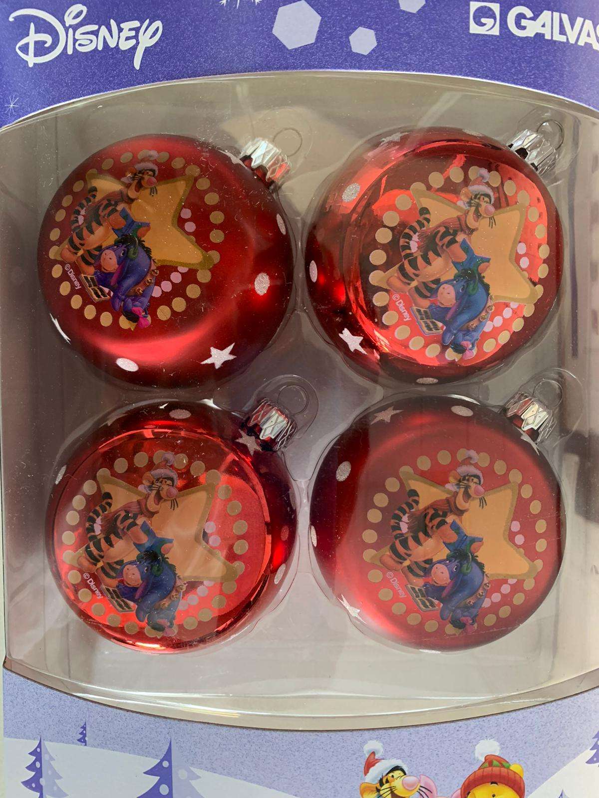 SET 4 PALLINE ROSSE WINNIE THE POOH TIGRO E HI-HO 12 CM ADDOBBI NATALESet 4 Palline rosse Tigro e Ih-Oh, perfette decorazioni natalizie di Winnie The Pooh per l’albero di Natale