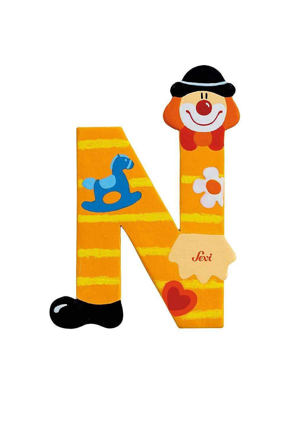 Trudi Sevi 81750 – Lettera N in legno a forma di Clown Giallo 9,5 cm Decorazione