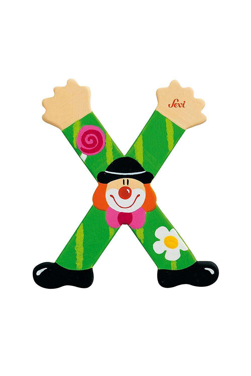 Trudi Sevi 81760 Lettera X In Legno A Forma Di Clown Verde 9,5 Cm Decorazione