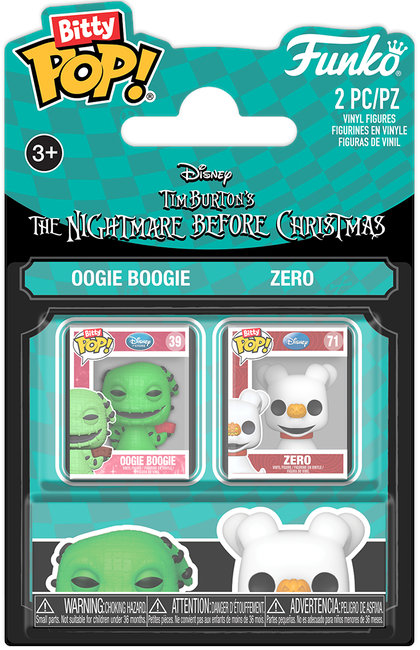 I vostri Pops preferiti sono stati rimpiccioliti in Bitty Pops! Questa confezione contiene Bitty POP! Oogie Boogie e Bitty POP! Zero. Le figure sono alte circa 2,2 cm.