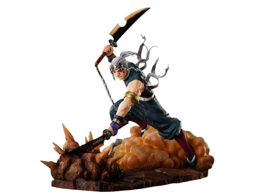 Caratterizzata da una scena di combattimento appariscente del Sound Hashira nell’Entertainment District, questa figura include le sue iconiche spade doppie Nichirin con un’elaborata impugnatura, guardia della spada, lama e catene che collegano le due spade ricreate con tale dettaglio da conferire a questa figura un aspetto più grande della vita.
