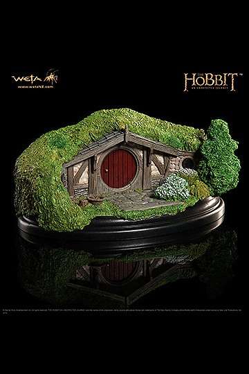 Questo splendido piccolo ambiente è un’esatta replica in miniatura del set cinematografico che può essere visitato a Hobbiton a Matamata, Nuova Zelanda. È stato creato dagli stessi artisti e artigiani che hanno lavorato al film.