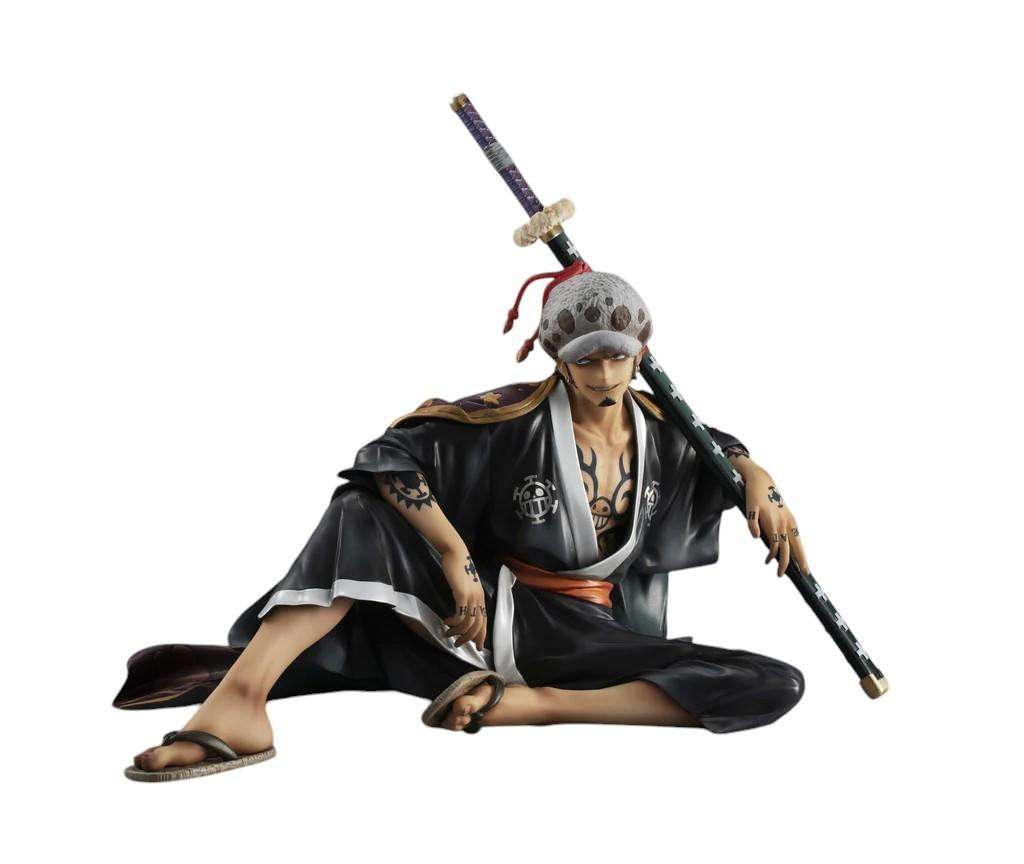 È stato scolpito seduto con la sua spada maledetta “Kikoku” al suo fianco un sorriso sicuro sul suo volto che cattura perfettamente il suo titolo di “chirurgo della morte”. Viene anche fornito con un pezzo di mano intercambiabile per un’opzione di posa alternativa!