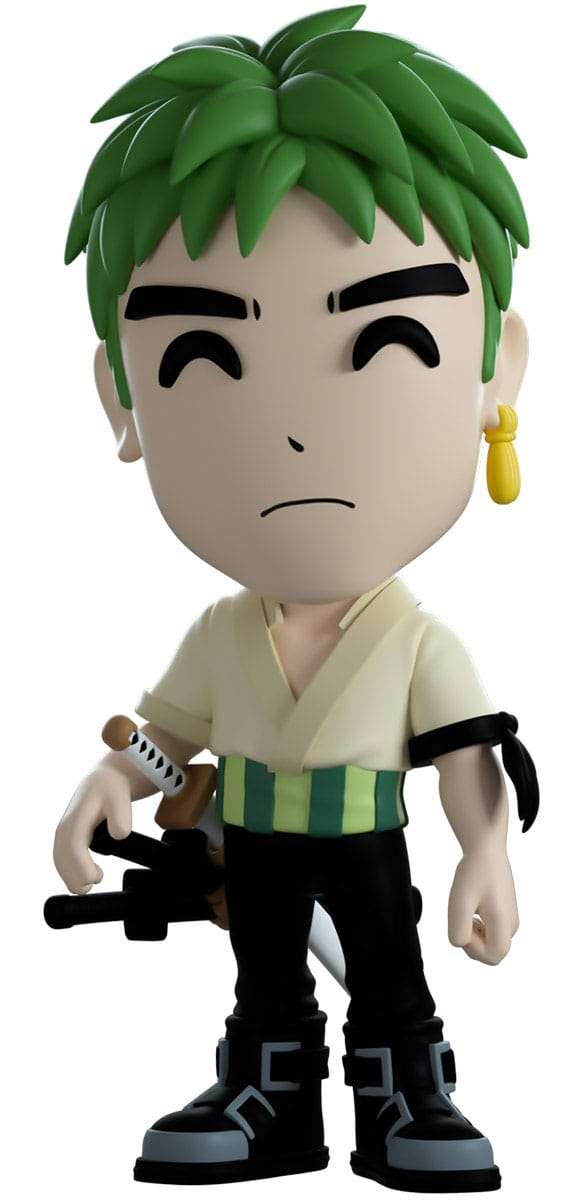 Non potresti mai contare la quantità di persone che Zoro ha attraversato solo per arrivare a Youtooz per il suo debutto! Con un’altezza di 4,7 pollici e un’espressione severa dal suo volto stoico, punte di corti capelli verde muschio sopra la sua testa mentre tre orecchini dorati pendono da l’orecchio sinistro. Con una camicia beige aperta sul davanti infilata nella fascia a strisce verdi intorno alla vita e una fascia nera legata attorno al braccio destro, la sua mano sinistra poggia sulle tre spade inguainate al suo fianco mentre il suo outfit è completo di pantaloni neri attillati e stivali con fibbia. L’esterno della sua confezione è una bellissima scena di petali rosa che cadono dagli alberi piegati. Mentre l’interno vede un’onda blu vibrante che si infrange e manda schiuma bianca del mare verso il cielo davanti a uno splendido sfondo giallo pallido, questo disegno poi scorre sulla protezione manica dove la sua figura può essere vista attraverso la grande finestra trasparente sul davanti. Questo oggetto da collezione viene spedito in una custodia esterna protettiva opaca, in rilievo e in una protezione in plastica di dimensioni personalizzate per la massima protezione durante la spedizione.