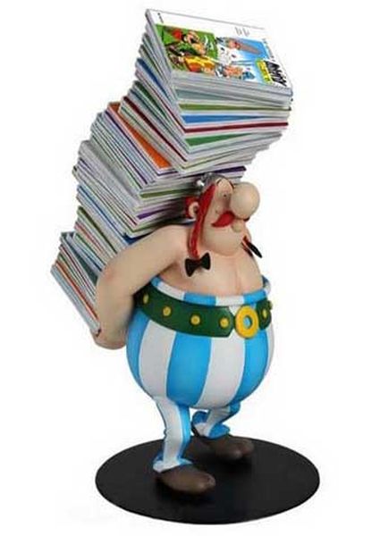 Da Plastoy nuove statue dedica agli eroi dei fumetti di René Goscinny and Albert Uderzo.Obelix é qui rappresentato intento a trasportare una pila di fumetti di cui è protagonista!