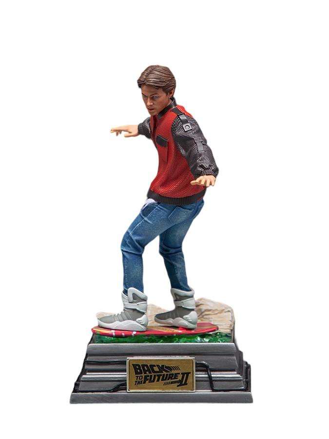 Iron Studios ha ricreato una delle scene più celebri di Ritorno al Futuro II del 1989, con questa sua prima uscita dedicata a Marty McFly on Hoverboard Art Scale 1/10 Statue.La scultura in resina scala 1/10 con dettagli incredibili e dipinta a mano, appoggia su base con targhetta e logo del film. Arriva in edizione limitata.