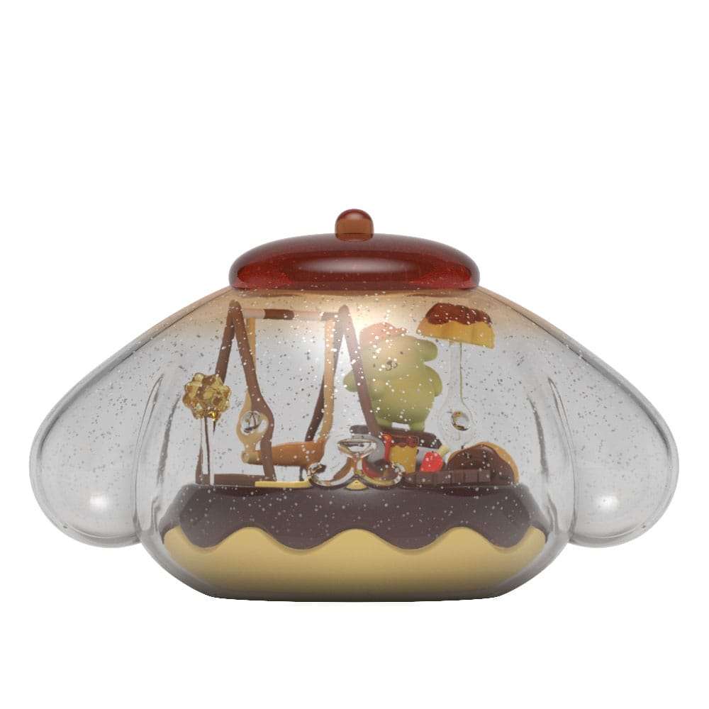 Preparati per un’accogliente avventura ispirata al caramello con Kandyland: Sanrio Pompompurin. Racchiuso in una cupola piena di glitter a forma del suo caratteristico berretto, questo diorama trasporta Pompompurin in un mondo decadente di dessert e calde tonalità cioccolatose. Traboccante di dolci dettagli, è il pezzo da collezione perfetto per gli appassionati dell’adorabile golden retriever di Sanrio.