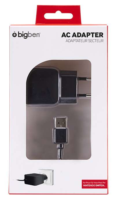 Adattatore AC per ricaricare il Nintendo Switch. Cavo di ricarica da 1 metro, USB-C. Ingresso: 220 V 50/60 Hz. Uscita: 5 V 2,4 A.